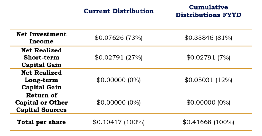 The Trust’s fiscal year (10/01/2025 through 09/30/2026) cumulative distributions are shown below: